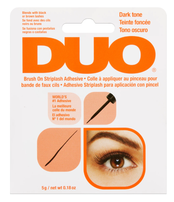 Aplicar una línea fina a lo largo de la base de las pestañas postizas (nunca se aplica directamente a los párpados). Dejar secar durante 30 segundos hasta que esté con textura espesa. Colocar las pestañas postizas cerca de la base de tus pestañas naturales y presionar los extremos en su lugar. Para asegurar las pestañas postizas, presionar suavemente en los extremos hasta notar que han quedado adheridos.